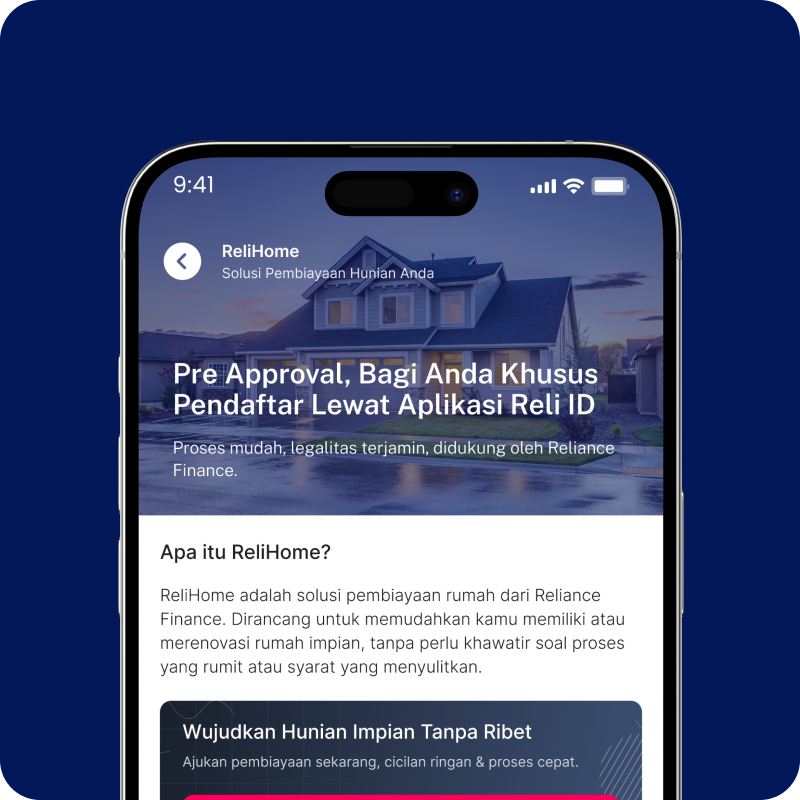 RELIHOME adalah fasilitas pembiayaan yang membantu Anda memiliki, membangun, atau merenovasi hunian sesuai kebutuhan.